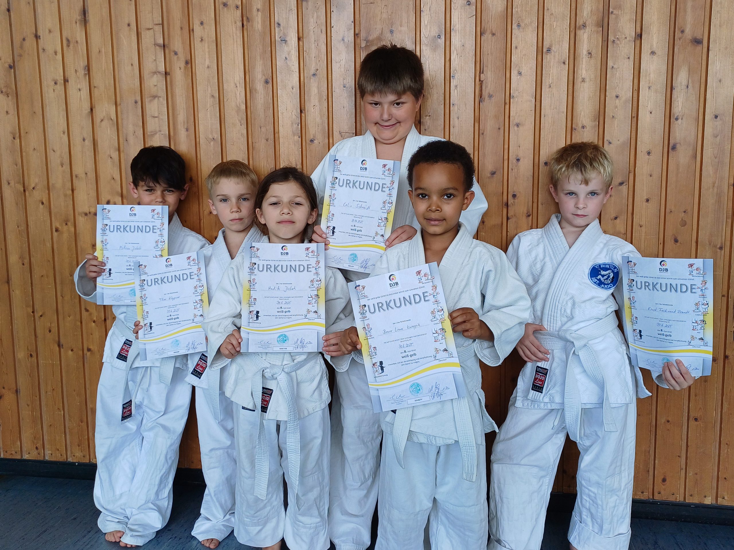 Über den weiß-gelben Gürtel dürfen sich freuen: Ernst Brand, Theo Höppner, Hadi Jlelati, Mohsen Jlelati, Bruno Kwappik, Tammo Mertens und Colin Schmidt.