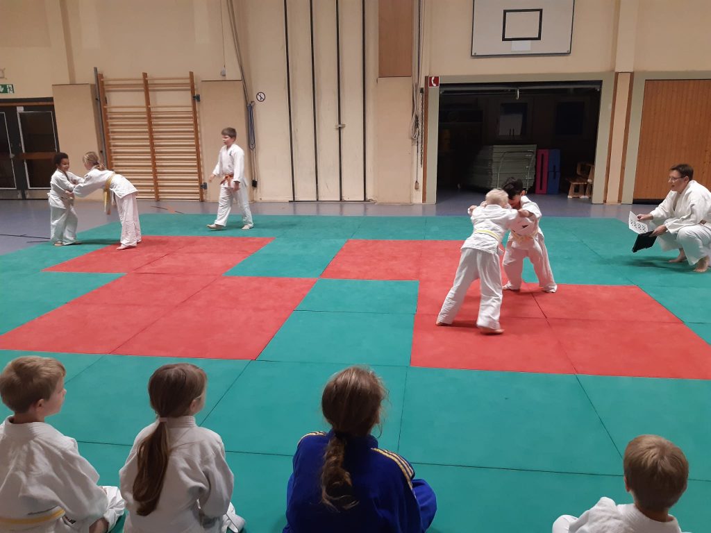 Anfang November konnten alle Judoka bis 14 Jahre an der Judo-Safari des Deutschen Judobundes teilnehmen. Mit 15 Teilnehmern haben wir in diesem Jahr erfreulicherweise wieder eine große Teilnehmergruppe zusammenbekommen. Die Judo-Safari ist ein Wettbewerb, der aus einem Kreativ- und einem Sportteil besteht. Im Kreativteil müssen alle Teilnehmer entsprechend ihrer Altersstufe zu einer vorgegeben Aufgabe etwas malen, basteln oder eine Geschichte schreiben. Der Sportteil setzt sich aus den Bereichen Springen, Werfen, Laufen und einem Budo-Kampf zusammen. In allen Wettbewerbsteilen sammelt man Punkte und bekommt dafür am Ende ein Abzeichen. Je nach Punktzahl sind das: das gelbe Känguru, der rote Fuchs, die grüne Schlange, der blaue Adler, der braune Bär oder der schwarze Panther. Für viele kleine Judoka ist es das Ziel, im Laufe der Zeit möglichst viele verschiedene Abzeichen zu erreichen.